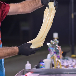 During our workshops, participants witness and actively take part in the whole fascinating process of candy making, starting from first stages of pouring the candy on the table, its coloring, and cooling, through its kneading, stretching, construction and right up to the final stages of its cutting, packaging, branding and tasting of course!